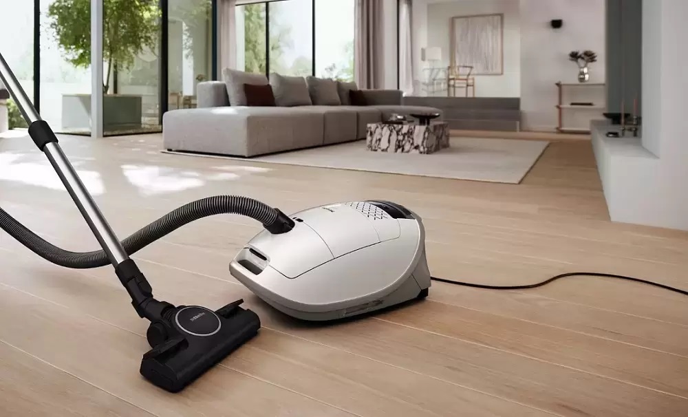 Пылесос Miele Complete C3 Active Parquet PowerLine SGDF5 серого цвета — премиальное устройство для безупречной сухой уборки, сочетающее в себе высокую мощность, интеллектуальное управление и элегантный дизайн. Эта классическая модель выполнена в благородном графитово-сером оттенке, который подчёркивает её солидность и легко вписывается в любой интерьер — от современного минимализма до классической обстановки. Благодаря мощности всасывания 890 Вт пылесос эффективно справляется с пылью, шерстью животных, крошками и мелким мусором на любых поверхностях, особенно на твёрдых покрытиях, таких как паркет или ламинат. Габариты корпуса — 22,7 × 49,6 см — обеспечивают компактное хранение, несмотря на внушительную производительность. Вес устройства составляет 7,3 кг, однако трёхточечная система передвижения делает его удивительно манёвренным и простым в управлении даже при уборке больших площадей. Радиус действия достигает 12 метров, что позволяет убрать просторное помещение без смены розетки. Управление мощностью реализовано непосредственно на корпусе, а электронная регулировка даёт возможность точно настроить интенсивность всасывания в зависимости от типа напольного покрытия. Световой дисплей и индикация заполнения пылесборника обеспечивают полный контроль над процессом, своевременно оповещая о необходимости замены мешка. Дополнительное удобство обеспечивает ножной переключатель включения и выключения, позволяющий управлять устройством, не наклоняясь и не прерывая уборку. Высококачественная система фильтрации задерживает до 99,9 % микрочастиц, включая аллергены, делая воздух в помещении значительно чище. Надежность, продуманная эргономика и безупречное немецкое качество делают эту модель идеальным выбором для тех, кто стремится к максимальной эффективности, комфорту и долговечности при повседневной уборке.