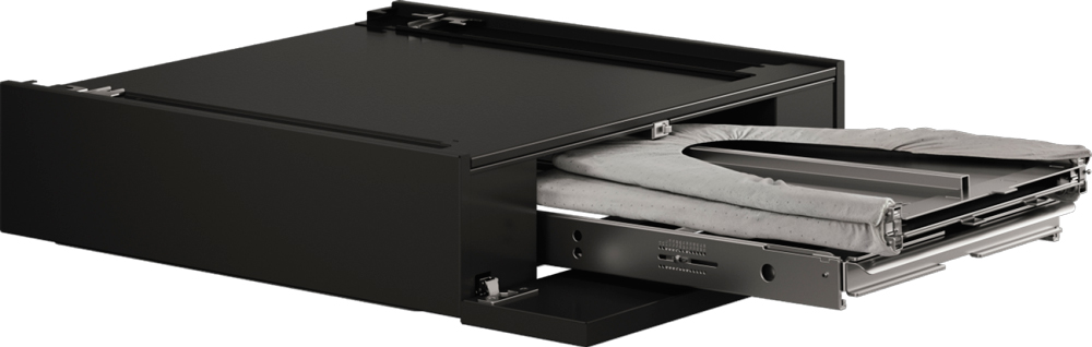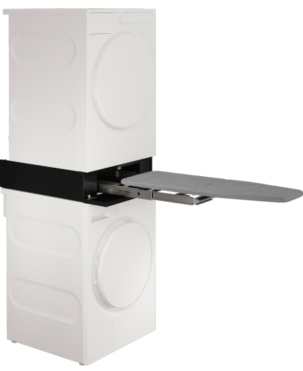 Выдвижная гладильная доска цвета черный графит устанавливается в колонну между сушильной и стиральной машиной.
