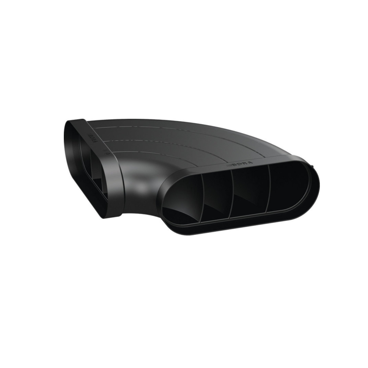 Угловой соединительный элемент Ecotube для плоского канала BORA EFBH90/1 выполнен в черном цвете. Компактная форма позволяет экономить место в шкафах и не мешает размещению других коммуникаций. Функционально деталь предназначена для организации поворота воздуховода под углом 90° в вертикальной плоскости. Такая конфигурация оптимальна для встраиваемых вытяжек, когда требуется перенаправить поток вверх, не создавая лишних воздушных завихрений. Система Ecotube обеспечивает плотное стыковое соединение между секциями плоского канала, сокращая утечки и потери напора.