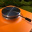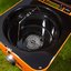 Уличный угольный гриль в ярком оранжевом корпусе. В нем можно обжаривать мясо, овощи и даже запекать пиццу на специальном камне (уже в комплекте). Сенсорная панель управления простая и наглядная.