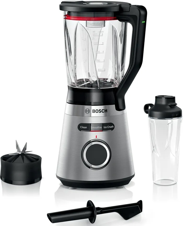 Блендер Bosch MMB6384M — мощное и надёжное решение для приготовления разнообразных блюд в домашних условиях. Этот стационарный прибор оснащён двигателем мощностью 1200 Вт, что обеспечивает быструю и эффективную переработку даже самых плотных ингредиентов: от замороженных ягод до орехов и овощей. Благодаря продуманной конструкции и качественным материалам, устройство демонстрирует высокую производительность и долговечность в повседневном использовании.[BR][BR]Модель предлагает три скоростных режима, позволяющих точно регулировать интенсивность измельчения в зависимости от типа продуктов и желаемой консистенции. Такая гибкость особенно ценится при создании крем-супов, соусов, пюре, коктейлей или теста — всё получается однородным, без комочков и с минимальными усилиями со стороны пользователя. Наличие импульсного режима даёт дополнительный контроль над процессом, обеспечивая идеальный результат даже при работе с неоднородными смесями.[BR][BR]Кувшин изготовлен из прочного и безопасного материала, устойчивого к царапинам и воздействию высоких температур. Его объём оптимален для семьи, а эргономичная форма облегчает наливание и хранение готовых блюд. Лезвия выполнены из нержавеющей стали и расположены под углом, способствующим максимальному перемешиванию содержимого без необходимости вмешательства в процесс.[BR][BR]Устройство отличается низким уровнем шума по сравнению с аналогами, что делает его комфортным в эксплуатации даже в утренние часы. Продуманная система фиксации чаши гарантирует безопасность: прибор не запустится, если ёмкость установлена неправильно. Компактные габариты позволяют разместить технику на любой кухонной поверхности без ущерба для функциональности.[BR][BR]Этот блендер станет незаменимым помощником для тех, кто ценит качество, скорость и удобство на кухне. Он идеально подходит как для повседневного приготовления простых блюд, так и для экспериментов с более сложными рецептами. Надёжность, современный дизайн и продуманная инженерия делают его отличным выбором для современного дома.