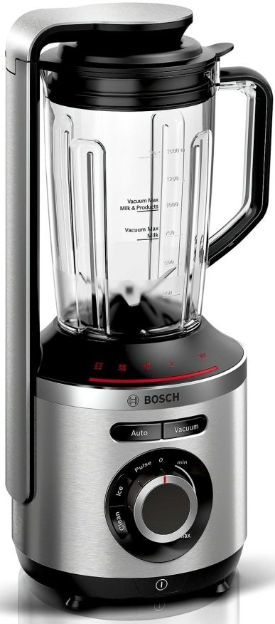 Стационарный блендер Bosch позволяет готовить смузи, коктейли, смешивать соусы и заправки, измельчать продукты до состояния пюре и многое другое. Его конструкция подразумевает автономную работу — вам нужно только положить овощи или фрукты и выбрать режим. Корпус сделан в основном из металла, что повышает надежность прибора. Он может как влиться в общую гамму интерьера, так и стать ярким акцентом; доминирующий цвет — нержавеющая сталь.
