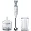 Погружной блендер Bosch позволяет готовить смузи, коктейли, смешивать соусы и заправки и многое другое. Такая конструкция требует вашего участия — нужно держать рукоятку с насадкой и контролировать направление движения. Плюс в том, что можно использовать ее прямо в кастрюле, когда готовите, например, суп-пюре. Корпус сделан в основном из пластика, что уменьшает вес прибора. Он может как влиться в общую гамму интерьера, так и стать ярким акцентом; доминирующий цвет — белый.