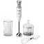 Погружной блендер Bosch позволяет готовить смузи, коктейли, смешивать соусы и заправки и многое другое. Такая конструкция требует вашего участия — нужно держать рукоятку с насадкой и контролировать направление движения. Плюс в том, что можно использовать ее прямо в кастрюле, когда готовите, например, суп-пюре. Корпус сделан в основном из пластика, что уменьшает вес прибора. Он может как влиться в общую гамму интерьера, так и стать ярким акцентом; доминирующий цвет — белый.