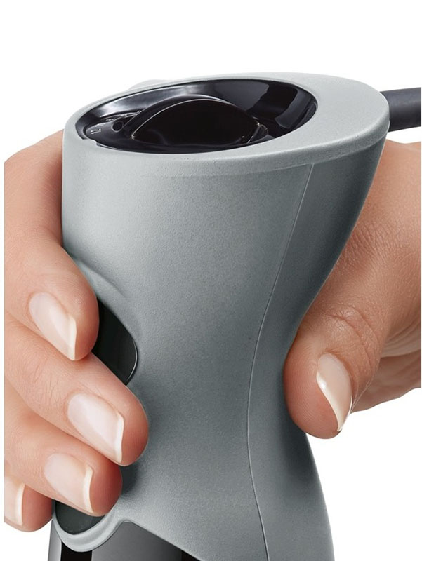 Погружной блендер Bosch позволяет готовить смузи, коктейли, смешивать соусы и заправки и многое другое. Такая конструкция требует вашего участия — нужно держать рукоятку с насадкой и контролировать направление движения. Плюс в том, что можно использовать ее прямо в кастрюле, когда готовите, например, суп-пюре. Корпус сделан в основном из пластика, что уменьшает вес прибора. Он может как влиться в общую гамму интерьера, так и стать ярким акцентом; доминирующий цвет — черный.