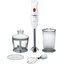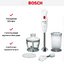 Погружной блендер Bosch позволяет готовить смузи, коктейли, смешивать соусы и заправки и многое другое. Такая конструкция требует вашего участия — нужно держать рукоятку с насадкой и контролировать направление движения. Плюс в том, что можно использовать ее прямо в кастрюле, когда готовите, например, суп-пюре. Корпус сделан в основном из пластика, что уменьшает вес прибора. Он может как влиться в общую гамму интерьера, так и стать ярким акцентом; доминирующий цвет — белый.