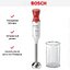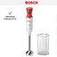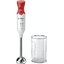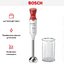 Погружной блендер Bosch позволяет готовить смузи, коктейли, смешивать соусы и заправки и многое другое. Такая конструкция требует вашего участия — нужно держать рукоятку с насадкой и контролировать направление движения. Плюс в том, что можно использовать ее прямо в кастрюле, когда готовите, например, суп-пюре. Корпус сделан в основном из пластика, что уменьшает вес прибора. Он может как влиться в общую гамму интерьера, так и стать ярким акцентом; доминирующий цвет — белый/красный.