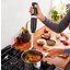 Погружной блендер KitchenAid позволяет готовить смузи, коктейли, смешивать соусы и заправки и многое другое. Такая конструкция требует вашего участия — нужно держать рукоятку с насадкой и контролировать направление движения. Плюс в том, что можно использовать ее прямо в кастрюле, когда готовите, например, суп-пюре. Корпус сделан в основном из пластика, что уменьшает вес прибора. Он может как влиться в общую гамму интерьера, так и стать ярким акцентом; доминирующий цвет — черный.