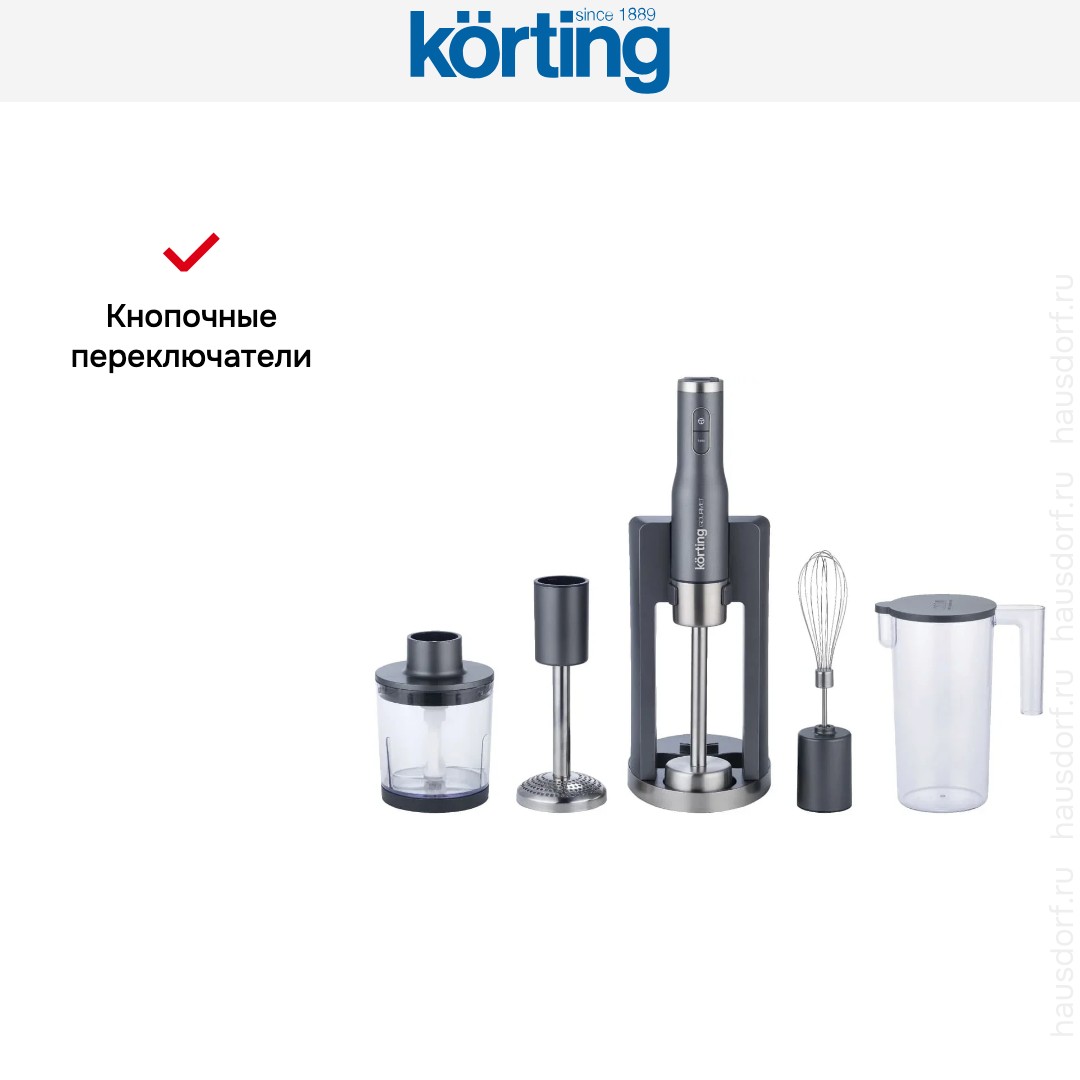 Блендер Korting KHB 0312 Gourmet — флагманский погружной прибор, созданный для гурманов и ценителей профессионального подхода к кулинарии. Оснащённый мощным 1500-ваттным двигателем и способный развивать до 15 000 оборотов в минуту, он легко справляется с самыми сложными задачами: дробит лёд в мелкую крошку, измельчает орехи до состояния пасты, превращает варёные овощи в шелковистое пюре и взбивает плотные кремы без единого комочка.