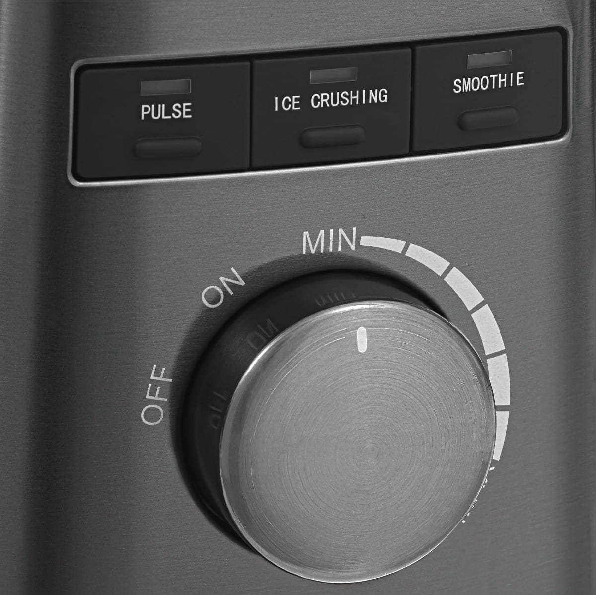Мощность работы достигает 1500 Вт, поэтому у вас получится обработать даже твердые продукты. Традиционное механическое управление просто и понятно — никаких проблем с переключением режимов.