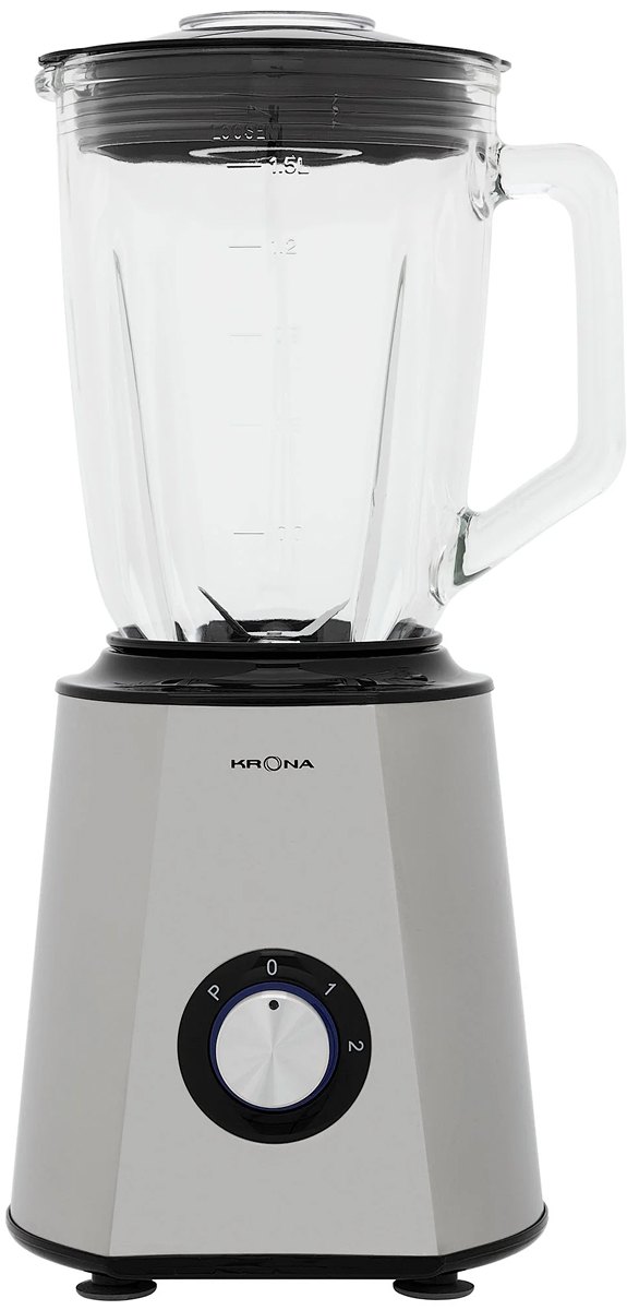 Стационарный блендер KRONA позволяет готовить смузи, коктейли, смешивать соусы и заправки, измельчать продукты до состояния пюре и многое другое. Его конструкция подразумевает автономную работу — вам нужно только положить овощи или фрукты и выбрать режим. Корпус сделан в основном из металла, что повышает надежность прибора. Он может как влиться в общую гамму интерьера, так и стать ярким акцентом; доминирующий цвет — нержавеющая сталь. Благодаря специальным нескользящим ножкам блендер сохраняет устойчивость даже на высоких оборотах.