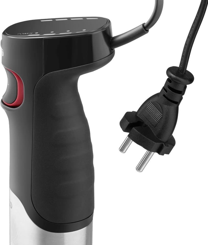 Эргономичный корпус продуман до мелочей: он удобно лежит в руке, не выскальзывает даже при длительной работе и не вызывает усталости. Благодаря погружному принципу действия, вы можете использовать любую подходящую посуду — от глубокой кастрюли до высокого стакана, — что делает прибор универсальным помощником на всех этапах готовки.