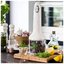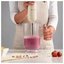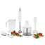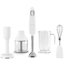 Блендер Smeg HBF02WHEU — многофункциональная погружная модель с большим количеством насадок. Вес прибора составляет 2,1 кг, так что использование его не требует больших усилий. На удобной нескользящей рукоятке белого цвета размещаются кнопки, позволяющие плавно регулировать скорость вращения — максимальная скорость может достигать 14850 об/мин. Высокая мощность 700 Вт позволяет измельчать, смешивать и взбивать продукты любой консистенции. В комплект входят насадка для приготовления пюре, измельчитель, проволочный венчик для взбивания и две емкости. Измельчать продукты можно особенно быстро благодаря фирменным ножам FlowBlend.