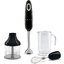 Объем мерного стакана 1,4 л удобен для приготовления порций на семью или для заготовок. В комплект входят насадка для пюре, измельчитель, чаша, венчик, насадка-кухонный комбайн и подставка, что превращает прибор в многофункционального помощника. Насадка для пюре создает шелковистое пюре без крупных кусочков, измельчитель быстро рубит орехи, зелень и овощи, а венчик справляется с взбиванием крема и белков. Подставка делает хранение аккуратным, а сменные насадки расширяют спектр бытовых задач.