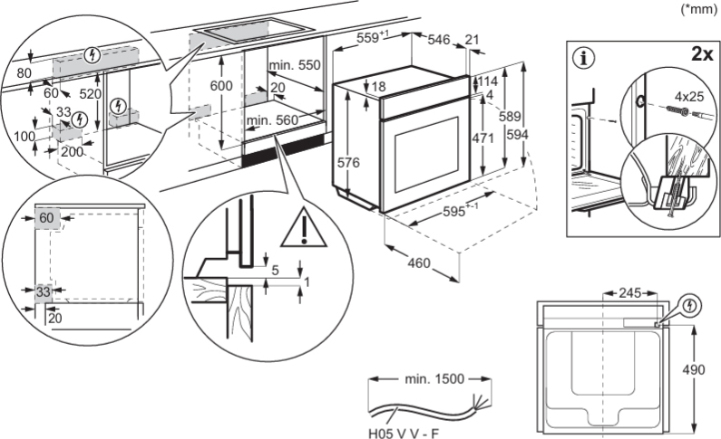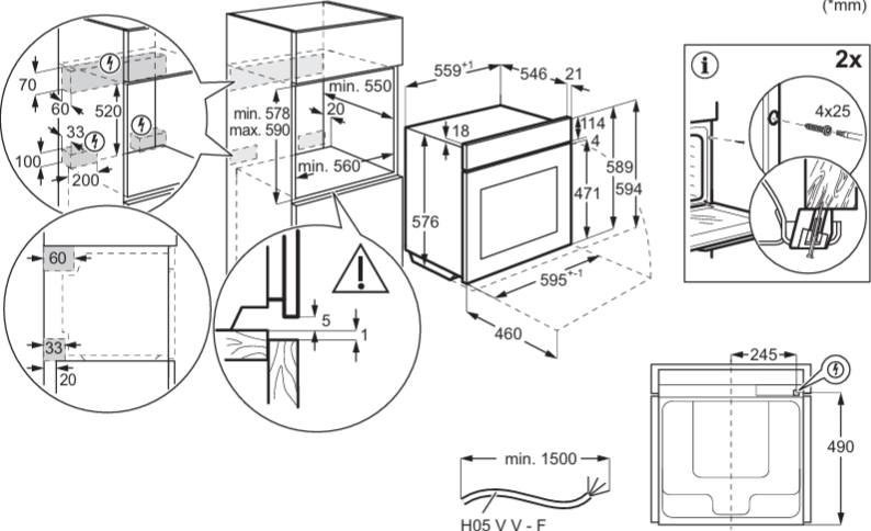 Ко всем моделям прилагаются подробные инструкции по установке, где указаны точные размеры ниши для каждой конкретной духовки.