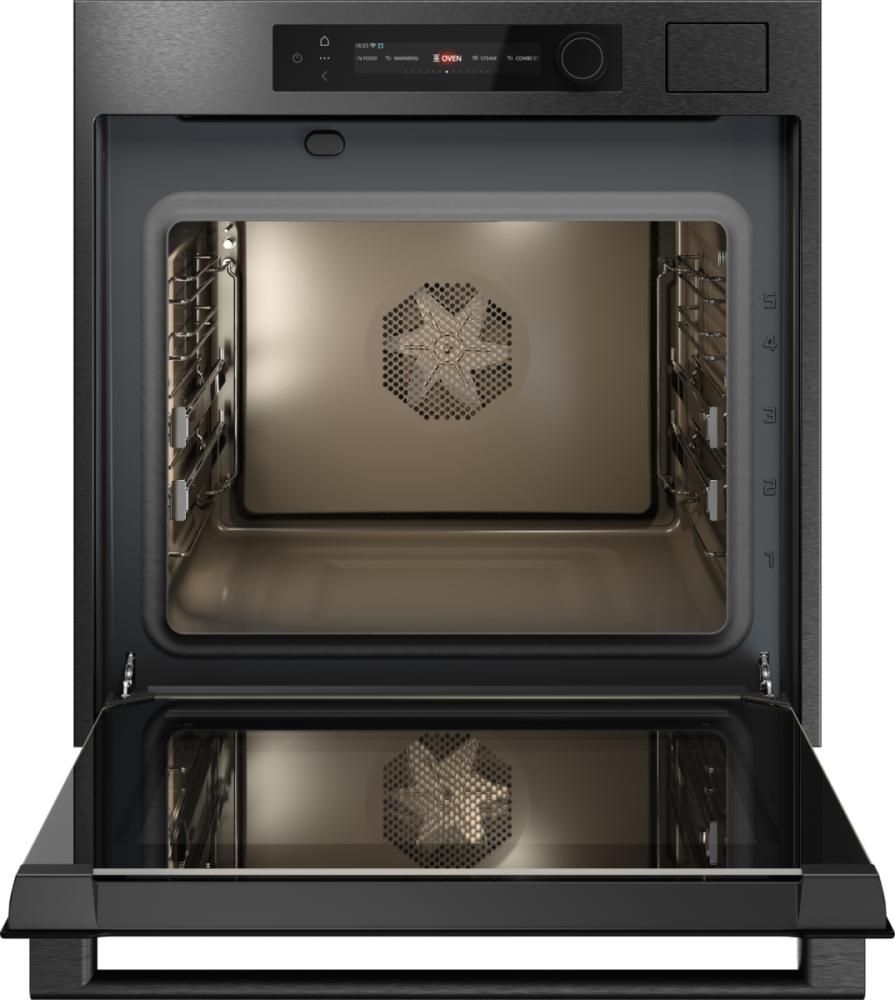 Конвекция представляет собой нагрев при помощи вентилятора и кольцевого нагревательного элемента, который располагается по периметру задней стенки рабочей камеры духовки. Вентилятор размещается внутри этого контура — с его помощью нагретый воздух равномерно распространяется по всей камере. Добавление пара происходит с помощью парогенератора. Для этого в специальную выдвижную емкость заливается вода, которая затем под действием высокой температуры превращается в пар.