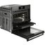 Управление реализовано через цветной TFT‑дисплей и сенсорные кнопки TouchControl, что делает навигацию быстрой и интуитивной. Электронные часы и таймер помогают планировать процесс, а электронный термощуп контролирует температуру внутри продукта и автоматически завершает программу в нужный момент. Телескопические направляющие с полным выдвижением и фиксацией, три уровня направляющих и комплект из трёх эмалированных противней повышают комфорт работы и безопасность при проверке готовности; наличествует также решётка и стеклянный противень для разных задач.
