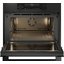 Для регулировки параметров приготовления служит верхняя панель управления с двумя поворотными переключателями, сенсорными кнопками (в том числе кнопкой включения подсветки) и большим TFT-дисплеем. Функции панели можно заблокировать от детей. Съемная откидная дверца из жаропрочного стекла очень удобна в очистке. Три слоя стекла и система активного охлаждения гарантируют безопасность использования. Дверца оснащена функцией плавного закрывания и открывания Dual Soft Close. Для удаления загрязнений со стенок камеры служит паровая очистка.
