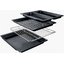 В стандартную комплектацию любого духового шкафа входят один или два противня — эмалированных или с антипригарным покрытием — и решетка. Единственный противень, как правило, имеет низкие бортики и предназначается для приготовления выпечки. Если духовка комплектуется двумя противнями, то второй отличается более высокими бортиками — его можно использовать для запекания мяса, птицы, овощных блюд. На решетке в духовке, не оснащенной грилем, обычно устанавливаются формы для запекания — стальные, керамические или стеклянные. В духовках премиум-класса количество противней может быть увеличено: к стандартному комплекту добавляются противни с перфорацией для мяса, специальные поддоны для сбора выделившегося сока.