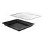 В стандартную комплектацию любого духового шкафа входят один или два противня — эмалированных или с антипригарным покрытием — и решетка. Единственный противень, как правило, имеет низкие бортики и предназначается для приготовления выпечки. Если духовка комплектуется двумя противнями, то второй отличается более высокими бортиками — его можно использовать для запекания мяса, птицы, овощных блюд. На решетке в духовке, не оснащенной грилем, обычно устанавливаются формы для запекания — стальные, керамические или стеклянные. В духовках премиум-класса количество противней может быть увеличено: к стандартному комплекту добавляются противни с перфорацией для мяса, специальные поддоны для сбора выделившегося сока.