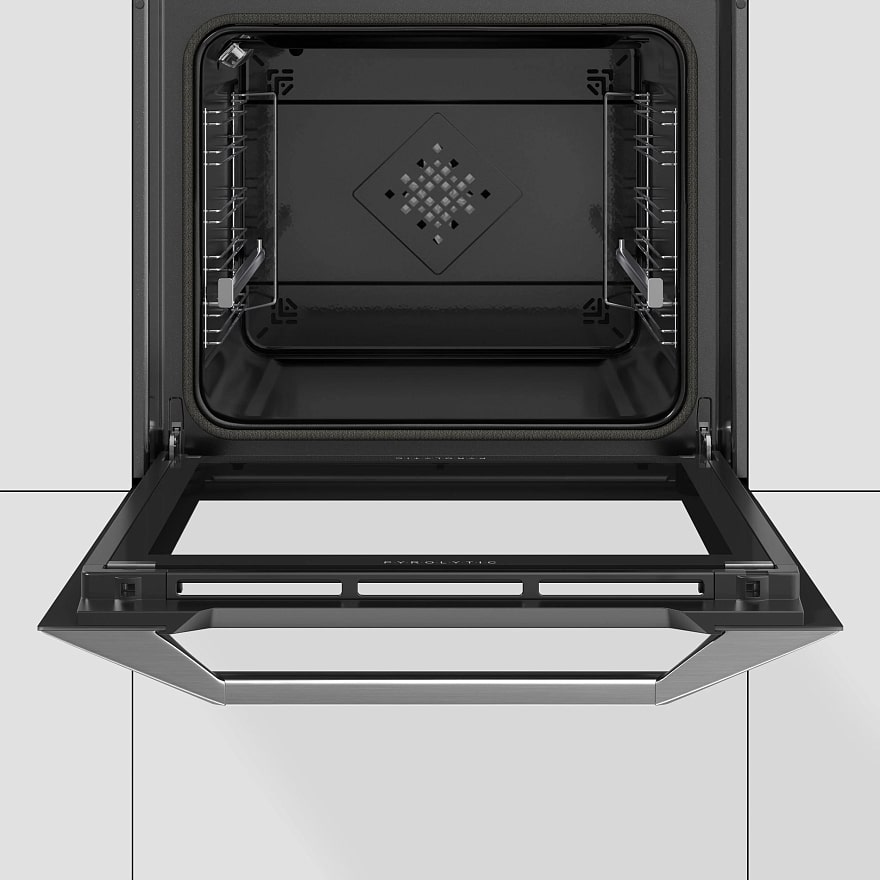Удобство управления подкреплено таймером и функцией отсрочки включения, что позволяет планировать процесс заранее. Пиролитическая очистка превращает остатки пищи в золу при высокой температуре, после чего их легко убрать влажной губкой; при этом дверца блокируется ради безопасности. Холодная внешняя поверхность двери, эффективная вентиляция и система охлаждения защищают кухонный гарнитур и пользователя при интенсивной эксплуатации.