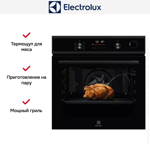 Готовьте свои лучшие блюда и пробуйте новые рецепты с духовым шкафом Electrolux EOC6P77H! Стандартные размеры и большой объем внутренней камеры — выбор тех, кто много готовит для семьи или частых праздничных встреч с друзьями. Желательно заранее продумать расположение такой модели в кухонном гарнитуре.