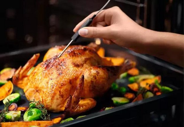 Термощуп в духовых шкафах Electrolux — это электронный термометр, который способен определить температуру внутри готовящихся блюд. Острый конец термощупа с температурным датчиком, температура измеряется непрерывно, а по достижении заданного значения духовка отключается автоматически.