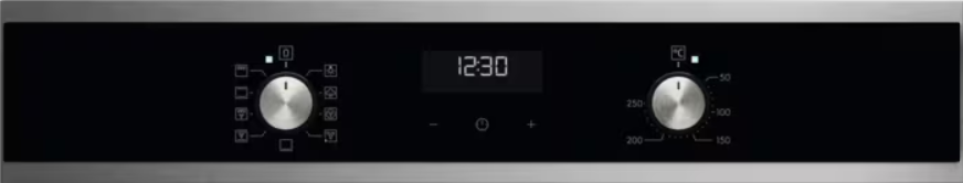 Особенности дизайна и внешней панели управления — также важный пункт при выборе духовки на кухню. В данной модели нужно обратить внимание на цвет — нержавеющая сталь,