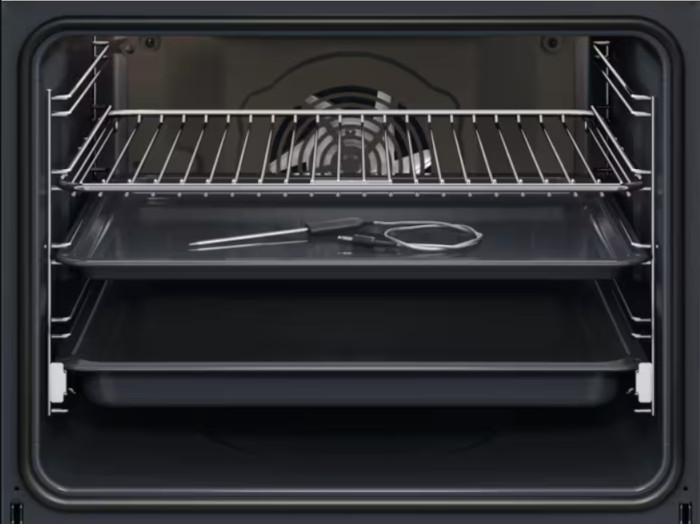 Термощуп в духовых шкафах Electrolux — это электронный термометр, который способен определить температуру внутри готовящихся блюд. Острый конец термощупа с температурным датчиком, температура измеряется непрерывно, а по достижении заданного значения духовка отключается автоматически.