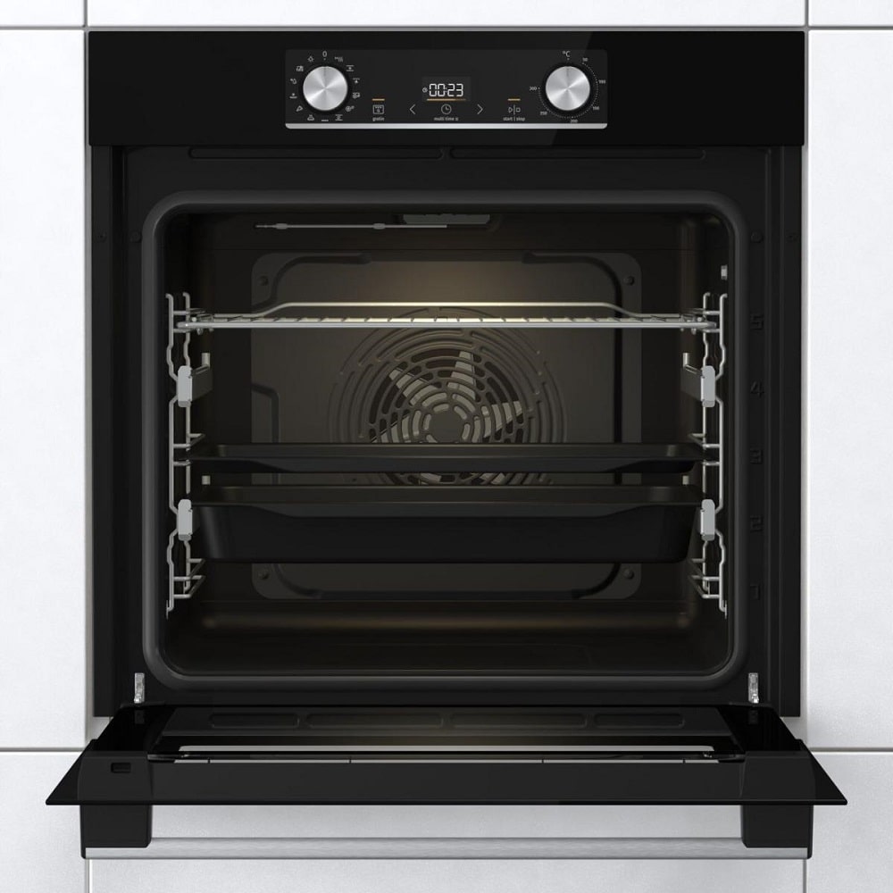 Духовой шкаф Gorenje BOSX6737E09BG — это независимая электрическая модель, созданная для тех, кто ценит безупречное сочетание современного дизайна, точной инженерии и удобства встраивания. Устройство обладает стандартными габаритами — высотой и шириной по 59,5 см и глубиной 56,4 см, что обеспечивает лёгкую и аккуратную интеграцию в большинство кухонных гарнитуров. Внутреннее пространство при этом остаётся достаточно вместительным для приготовления разнообразных блюд — от ароматной выпечки до крупных мясных композиций.