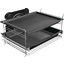 В стандартную комплектацию любого духового шкафа входят один или два противня — эмалированных или с антипригарным покрытием — и решетка. Единственный противень, как правило, имеет низкие бортики и предназначается для приготовления выпечки. Если духовка комплектуется двумя противнями, то второй отличается более высокими бортиками — его можно использовать для запекания мяса, птицы, овощных блюд. На решетке в духовке, не оснащенной грилем, обычно устанавливаются формы для запекания — стальные, керамические или стеклянные. В духовках премиум-класса количество противней может быть увеличено: к стандартному комплекту добавляются противни с перфорацией для мяса, специальные поддоны для сбора выделившегося сока.