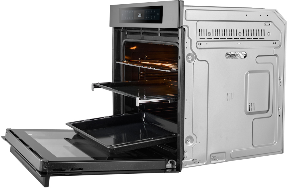 Электрические духовки — мощные приборы с большим количеством способов нагрева и обширным функционалом. Кроме верхнего и нижнего нагревательных элементов (ТЭНов), они оснащаются кольцевым нагревом, грилем, конвекционным вентилятором, микроволнами и паром. В числе их преимуществ — отсутствие открытого пламени, наличие программ очистки, самый широкий ассортимент. Недостатком электродуховок можно счесть более высокую стоимость и большую трудоемкость ремонта.