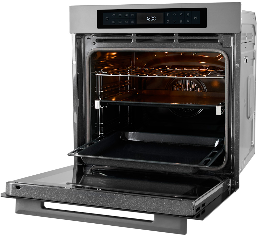 При помощи электронного программатора можно не только определить способ нагрева и температуру, но и установить таймер с автоматическим отключением, отложить запуск на любое удобное время, выбрать предустановленные программы, сохранять в памяти собственные рецепты. На дисплее появляются также сообщения об ошибках, выводятся данные о блокировке дверцы или панели управления.