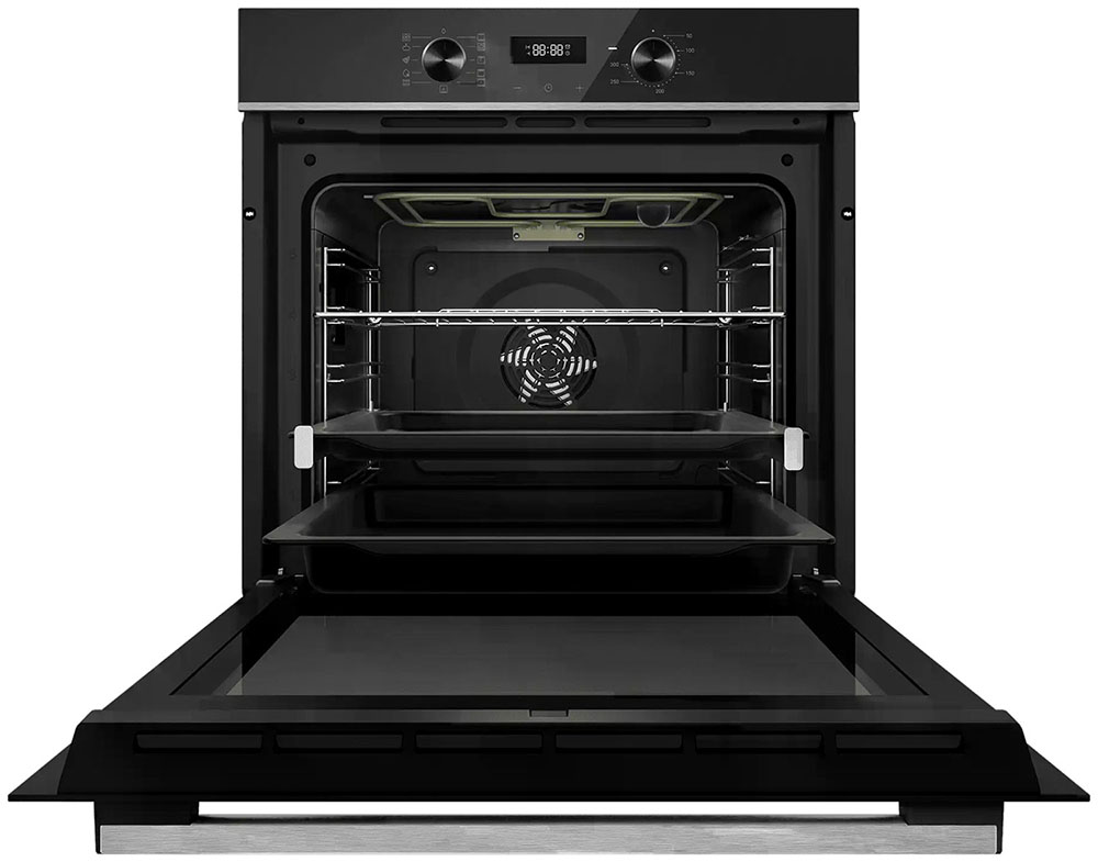 Особенности дизайна и внешней панели управления — также важный пункт при выборе духовки на кухню. В данной модели нужно обратить внимание на цвет — черный/нержавеющая сталь, охлаждение двери, чтобы поверхность и мебель вокруг не нагревались.