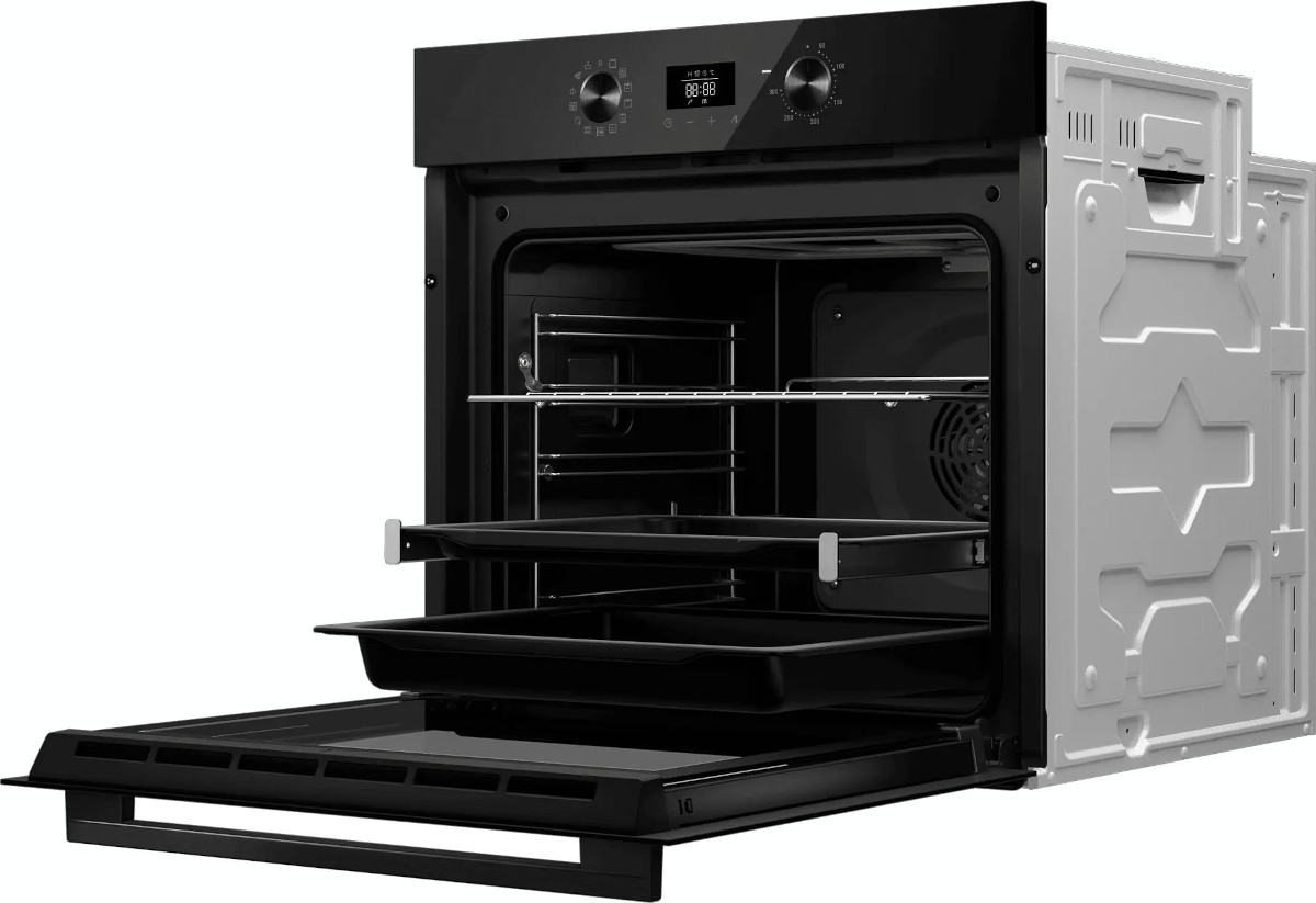 Особенности дизайна и внешней панели управления — также важный пункт при выборе духовки на кухню. В данной модели нужно обратить внимание на цвет — черный,