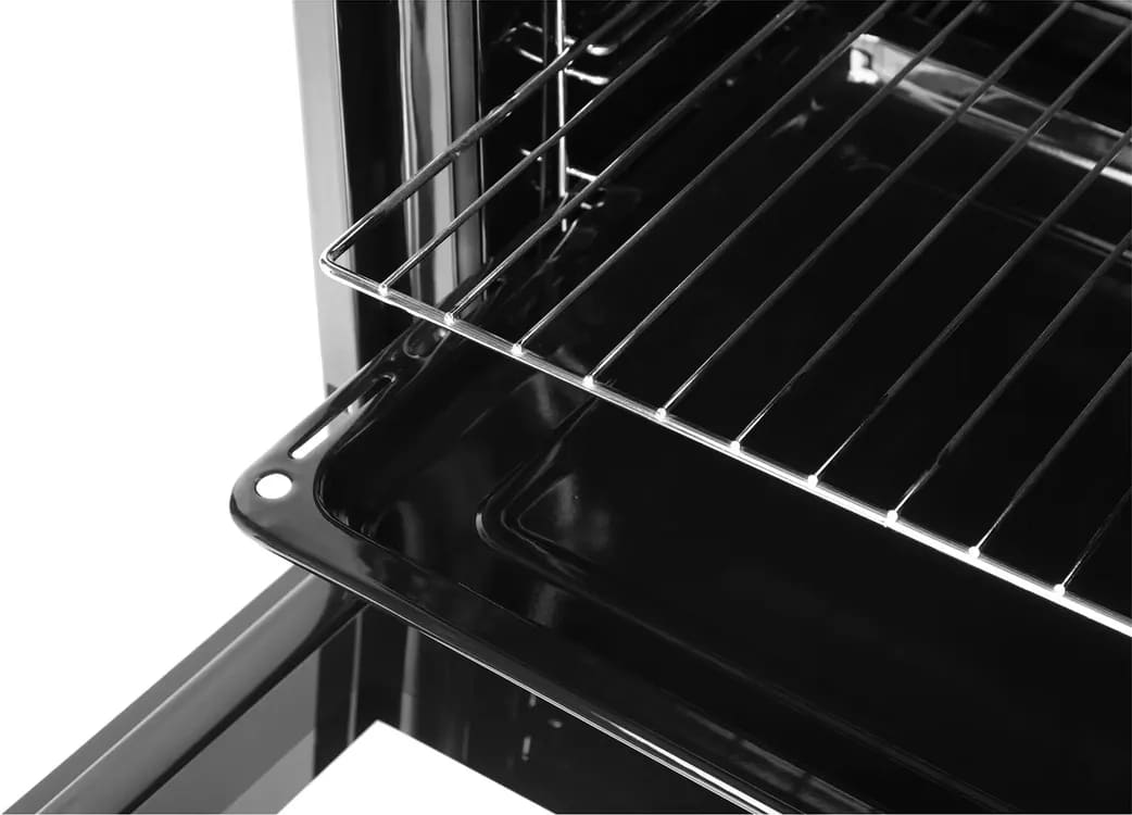 В стандартную комплектацию любого духового шкафа входят один или два противня — эмалированных или с антипригарным покрытием — и решетка. Единственный противень, как правило, имеет низкие бортики и предназначается для приготовления выпечки. Если духовка комплектуется двумя противнями, то второй отличается более высокими бортиками — его можно использовать для запекания мяса, птицы, овощных блюд. На решетке в духовке, не оснащенной грилем, обычно устанавливаются формы для запекания — стальные, керамические или стеклянные. В духовках премиум-класса количество противней может быть увеличено: к стандартному комплекту добавляются противни с перфорацией для мяса, специальные поддоны для сбора выделившегося сока.