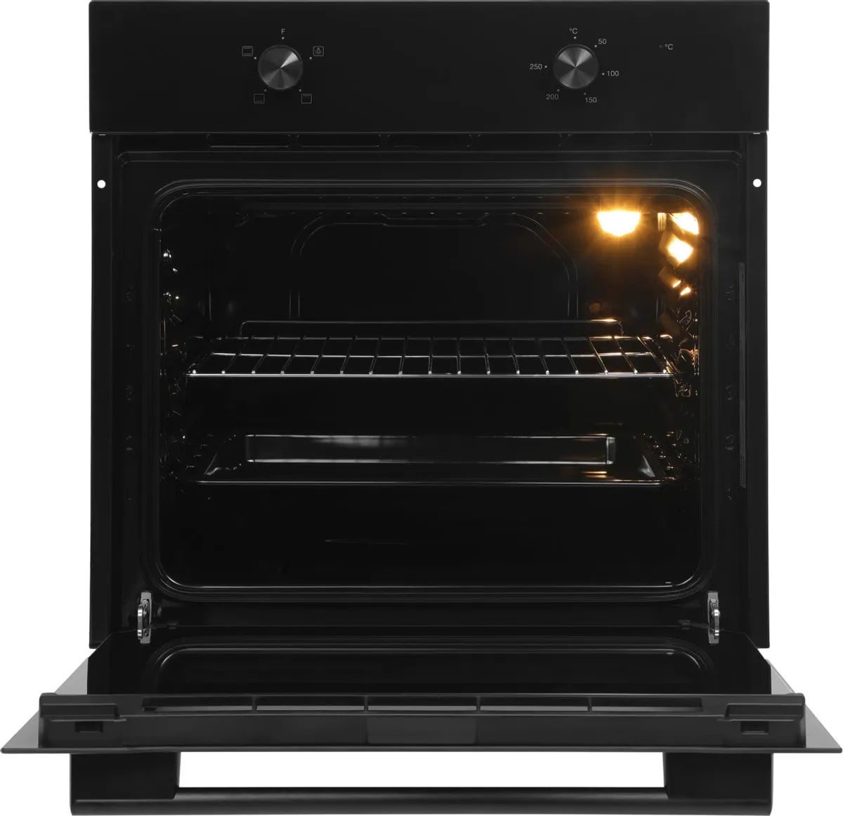 Особенности дизайна и внешней панели управления — также важный пункт при выборе духовки на кухню. В данной модели нужно обратить внимание на цвет — черный, Механическая панель управления позволяет быстро разобраться в настройке программ и не требует чрезмерных усилий.