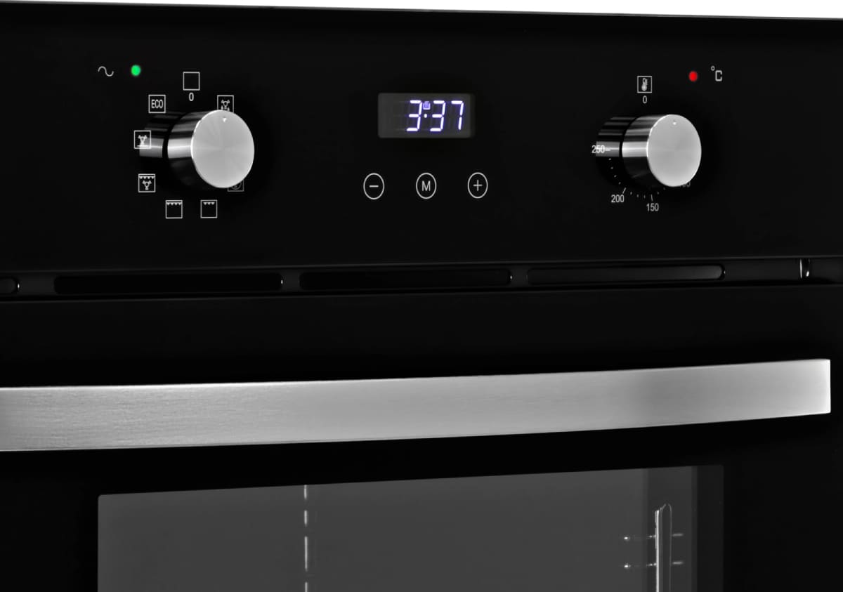 Гораздо нагляднее индикация в духовках с электронным управлением. На панели управления находится дисплей — текстовый или цифровой, на котором высвечиваются сообщения, оповещающие об активации той или иной опции. В более простых случаях духовки оснащаются сегментным ЖК-дисплеем, на который выводятся условные обозначения и числа. На нем может появляться, например, сообщение об уровне мощности гриля или микроволн, о выбранной температуре, о времени, оставшемся до отключения духовки, об запланированной отсрочке старта. TFT-дисплей имеет больший набор возможностей: на нем отображаются не только символы и цифры, но и полноценный текст, а также изображения.