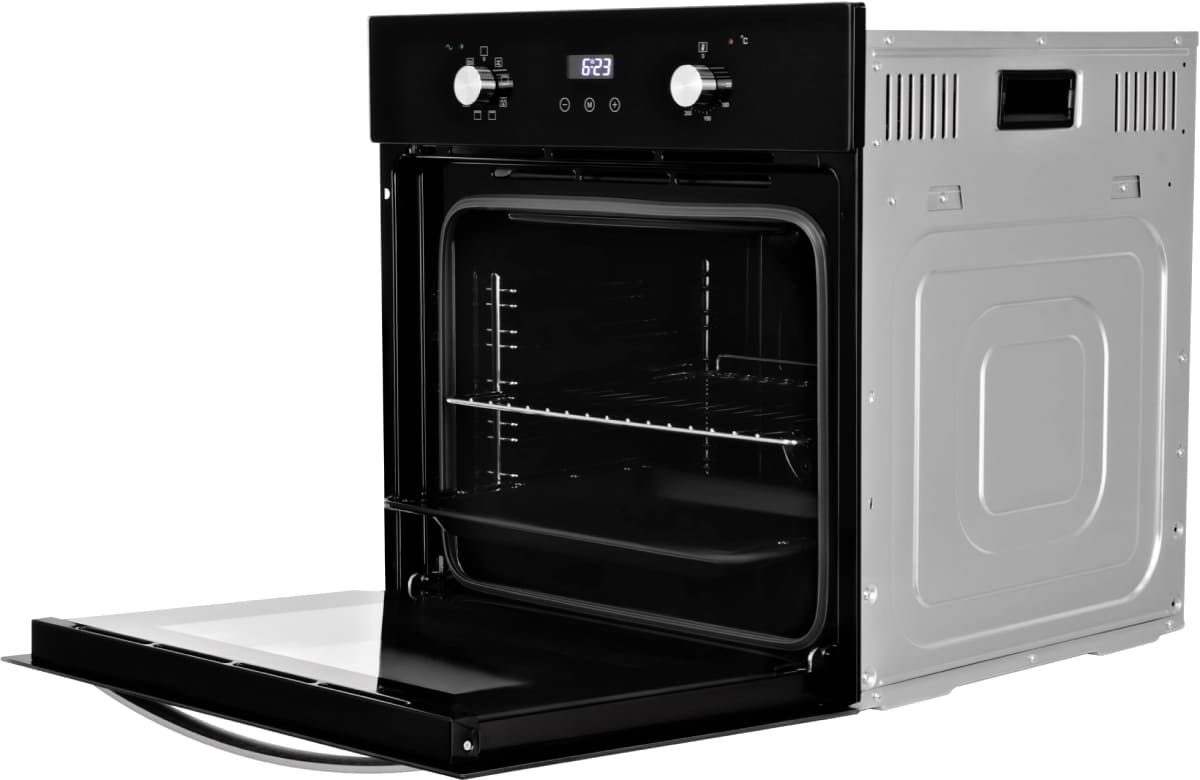 Глубина духовых шкафов, в отличие от их высоты и ширины, не отличается разнообразием. Стандартное значение составляет 54-55 см, что позволяет встраивать устройство в обычную кухонную тумбу или колонну глубиной 60 см так, чтобы оставалось достаточно места до задней стенки мебели или стены кухни для обеспечения нормальной вентиляции. В инструкциях по установке указывается, что это расстояние должно составить не менее 4–5 см. Объем такой духовки может быть равен от 50 до 70 литров.