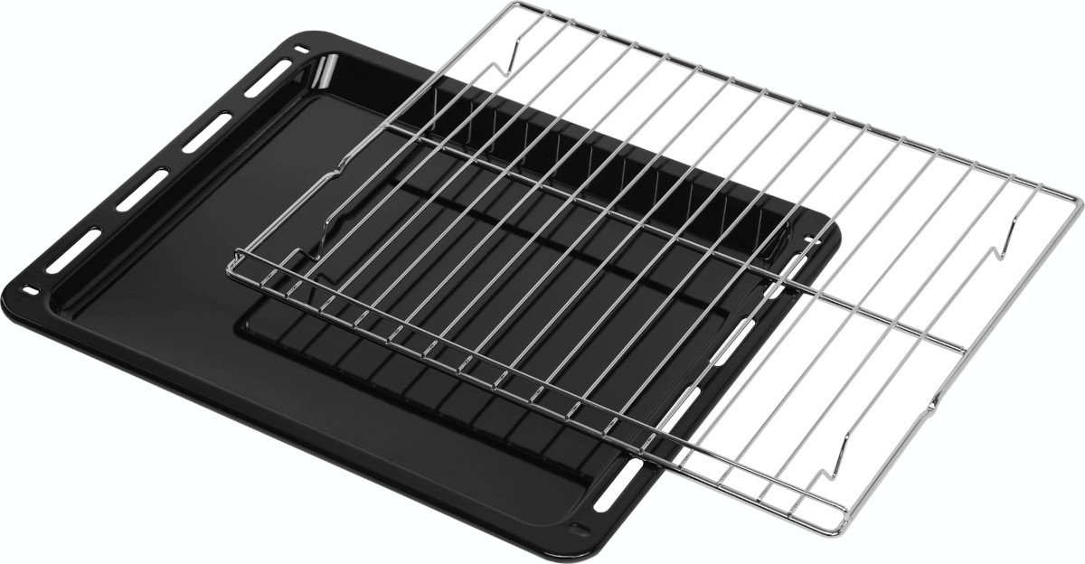 В стандартную комплектацию любого духового шкафа входят один или два противня — эмалированных или с антипригарным покрытием — и решетка. Единственный противень, как правило, имеет низкие бортики и предназначается для приготовления выпечки. Если духовка комплектуется двумя противнями, то второй отличается более высокими бортиками — его можно использовать для запекания мяса, птицы, овощных блюд. На решетке в духовке, не оснащенной грилем, обычно устанавливаются формы для запекания — стальные, керамические или стеклянные. В духовках премиум-класса количество противней может быть увеличено: к стандартному комплекту добавляются противни с перфорацией для мяса, специальные поддоны для сбора выделившегося сока.
