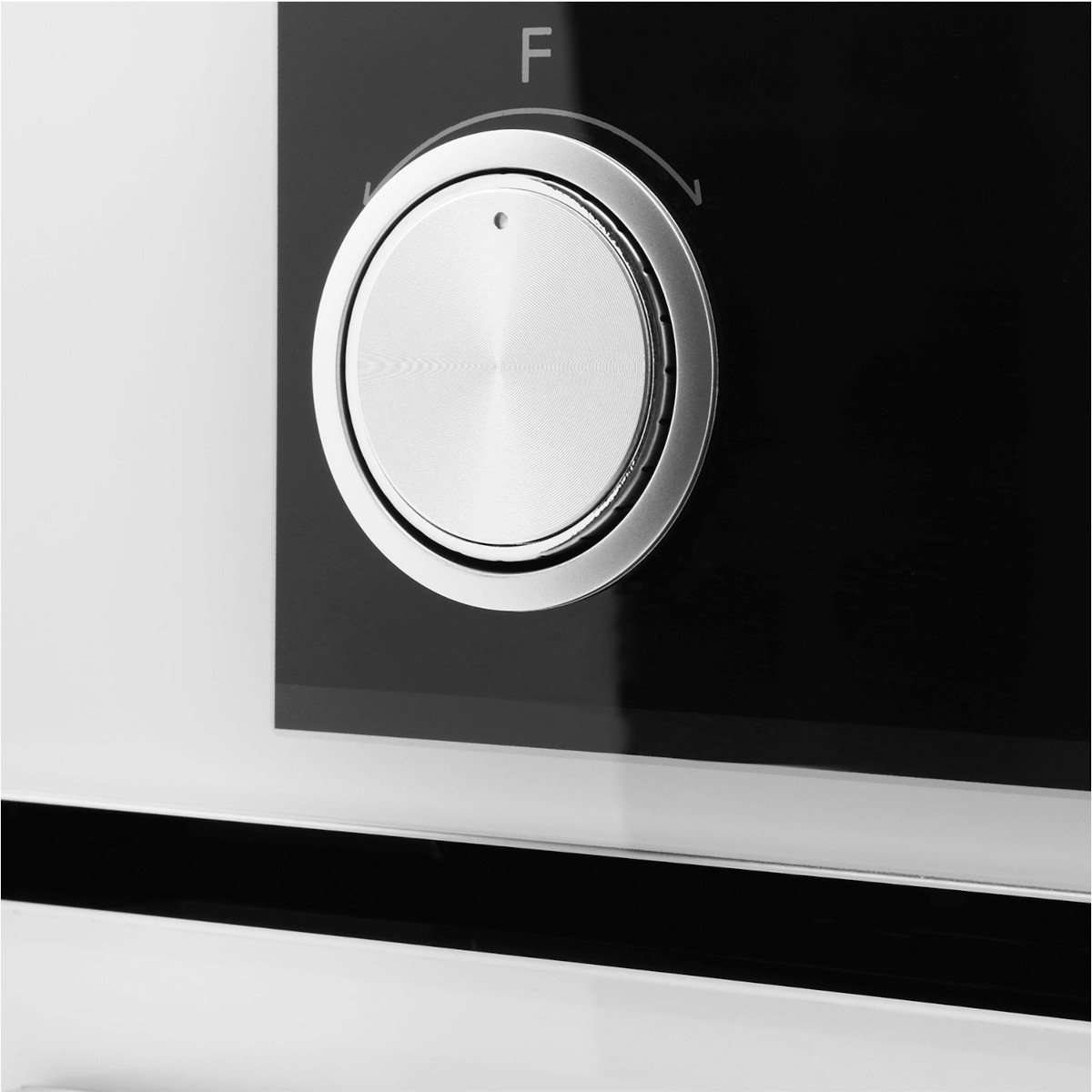 Особенности дизайна и внешней панели управления — также важный пункт при выборе духовки на кухню. В данной модели нужно обратить внимание на цвет — белый, охлаждение двери, чтобы поверхность и мебель вокруг не нагревались.