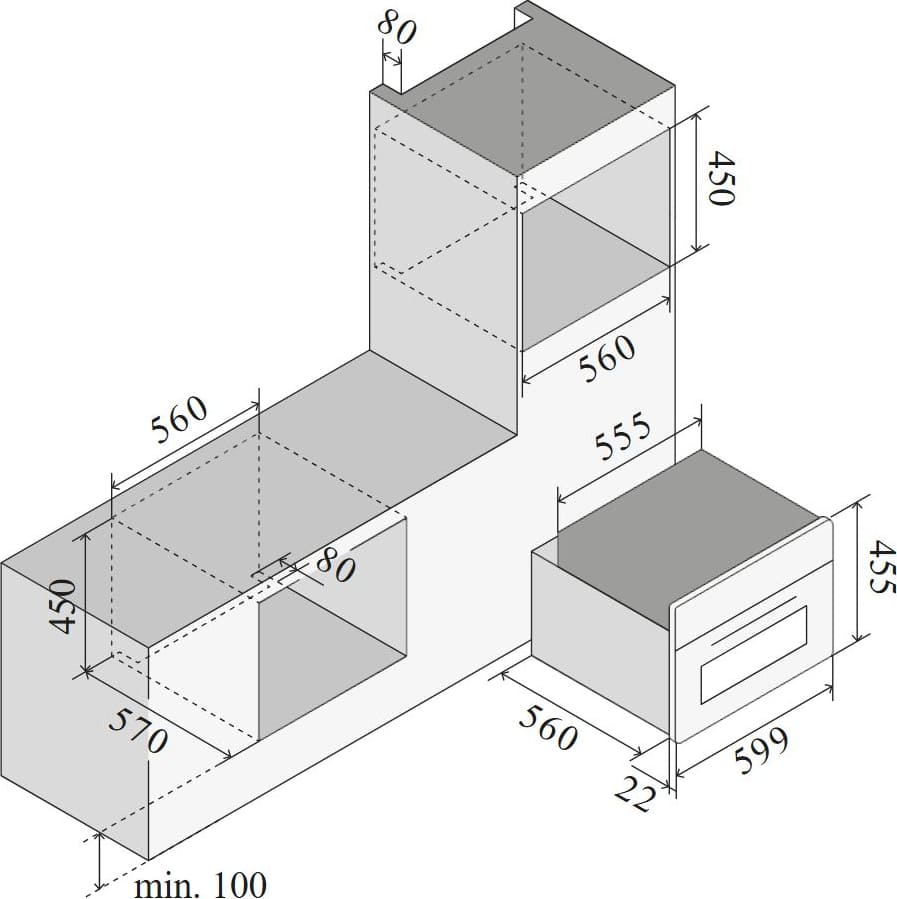 При установке требуется строго соблюдать правила техники безопасности — в частности, выдерживать размеры всех зазоров между стенками духовки и стенками мебели, необходимые для беспрепятственной циркуляции воздуха. Так, расстояние до боковых стенок мебели должно составлять не менее 0,5–1 см, а до задней стенки — не менее 4–5 см.