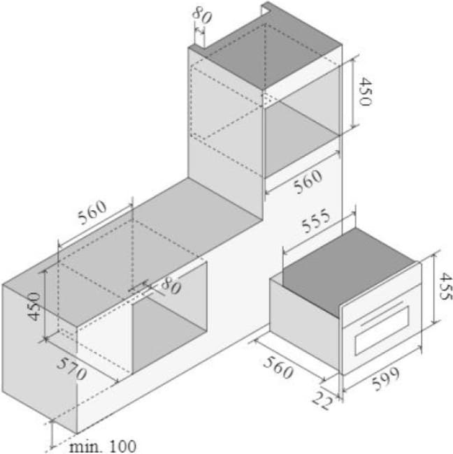 При установке требуется строго соблюдать правила техники безопасности — в частности, выдерживать размеры всех зазоров между стенками духовки и стенками мебели, необходимые для беспрепятственной циркуляции воздуха. Так, расстояние до боковых стенок мебели должно составлять не менее 0,5–1 см, а до задней стенки — не менее 4–5 см.
