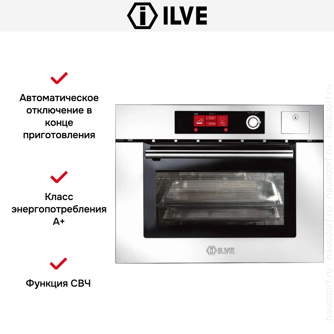 Количество режимов работы в духовом шкафу Илве: 10. В число доступных программ входят: конвекция, приготовление с помощью микроволн, дополнительное использование пара, гриль для создания хрустящей корочки, и другие. Помимо основных программ воспользуйтесь специальными возможностями этого прибора: быстрым разогревом для ускорения работы; и другими. Тип гриля в этой модели — электрический.