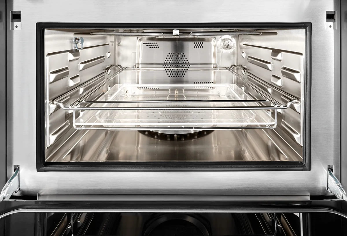 Горячий воздух с температурой от 140 до 250 градусов позволяет создать хрустящую румяную корочку, а пар придает особую сочность внутренней части блюда при сохранении всех полезных веществ. В большинстве духовых шкафов пар, температура которого составляет 100°C, подается в рабочую камеру через определенные интервалы.