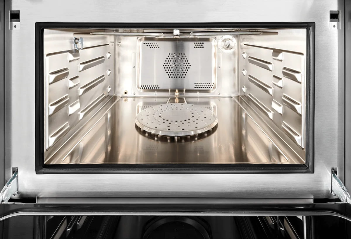 Благодаря этой функции в духовом шкафу можно не только готовить, но и разогревать, как в микроволновке. Использовать микроволны в разных моделях можно по-отдельности и в сочетании с другими режимами: грилем, паром, верхним и нижним нагревом.