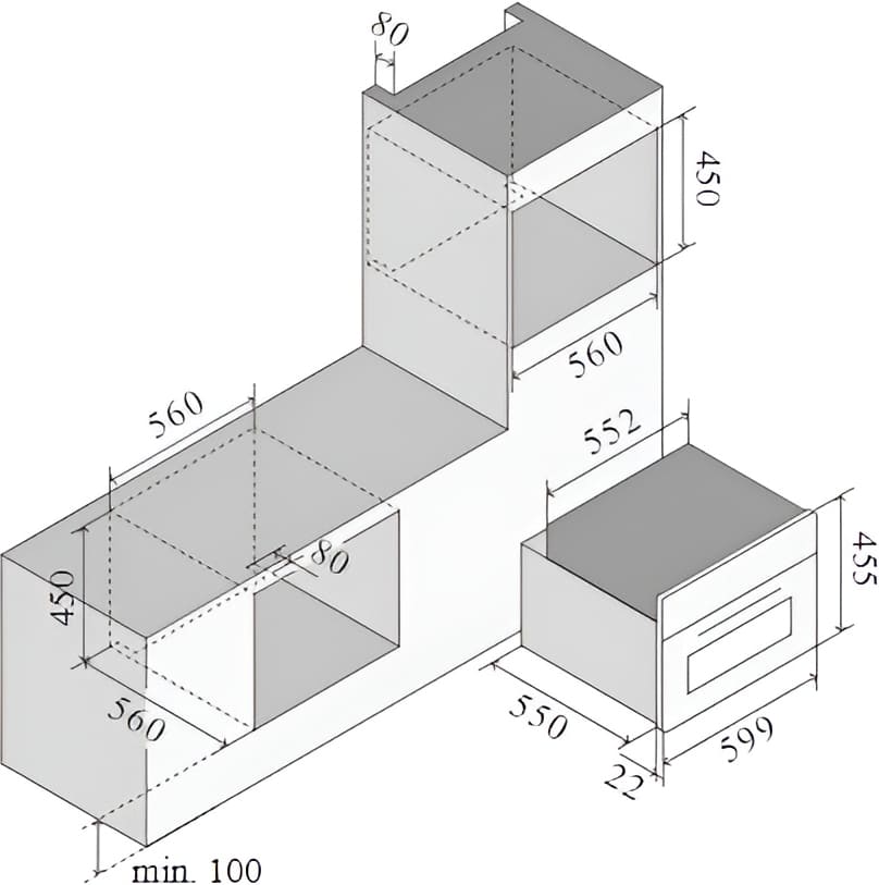 Размеры ниши для встраивания духового шкафа определяются, исходя из габаритов самого устройства. Стандартные модели обычно без труда устанавливаются в нишу шириной около 560 мм, высотой около 595 мм и глубиной примерно 550 мм. Следует помнить, что фасад устройства должен иметь большие размеры, чем величина ниши.