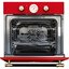 Особенности дизайна и внешней панели управления — также важный пункт при выборе духовки на кухню. В данной модели нужно обратить внимание на цвет — красный, Механическая панель управления позволяет быстро разобраться в настройке программ и не требует чрезмерных усилий.