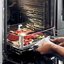Доводчик дверцы в духовом шкафу позволяет справиться с извлечением тяжелых противней без лишних хлопот, экономит время, способствует безопасности использования, снижая до минимума возможность ожога.
