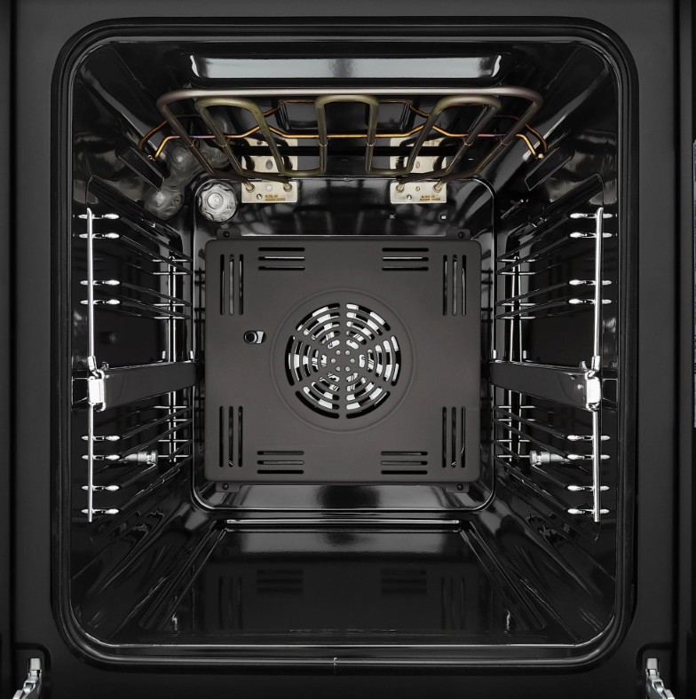 Такое приготовление возможно благодаря созданию трехмерного потока горячего воздуха от верхнего, нижнего и кольцевого нагревательного элемента — последний размещается в задней части духового шкафа. К ним добавляется работа вентилятора, расположенного на задней стенке камеры. С его помощью происходит принудительная циркуляция воздуха: его потоки распределяются по всей камере, в том числе и между уровнями приготовления. Куда бы ни был помещен противень с блюдом, горячий воздух будет обтекать его со всех сторон, нагревая равномерно. Потоки воздуха направлены так, что при этом не происходит смешивания запахов или вкусов.